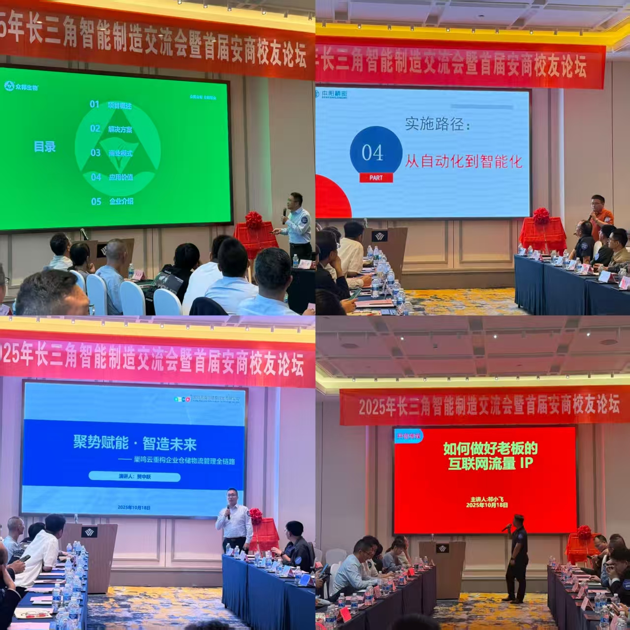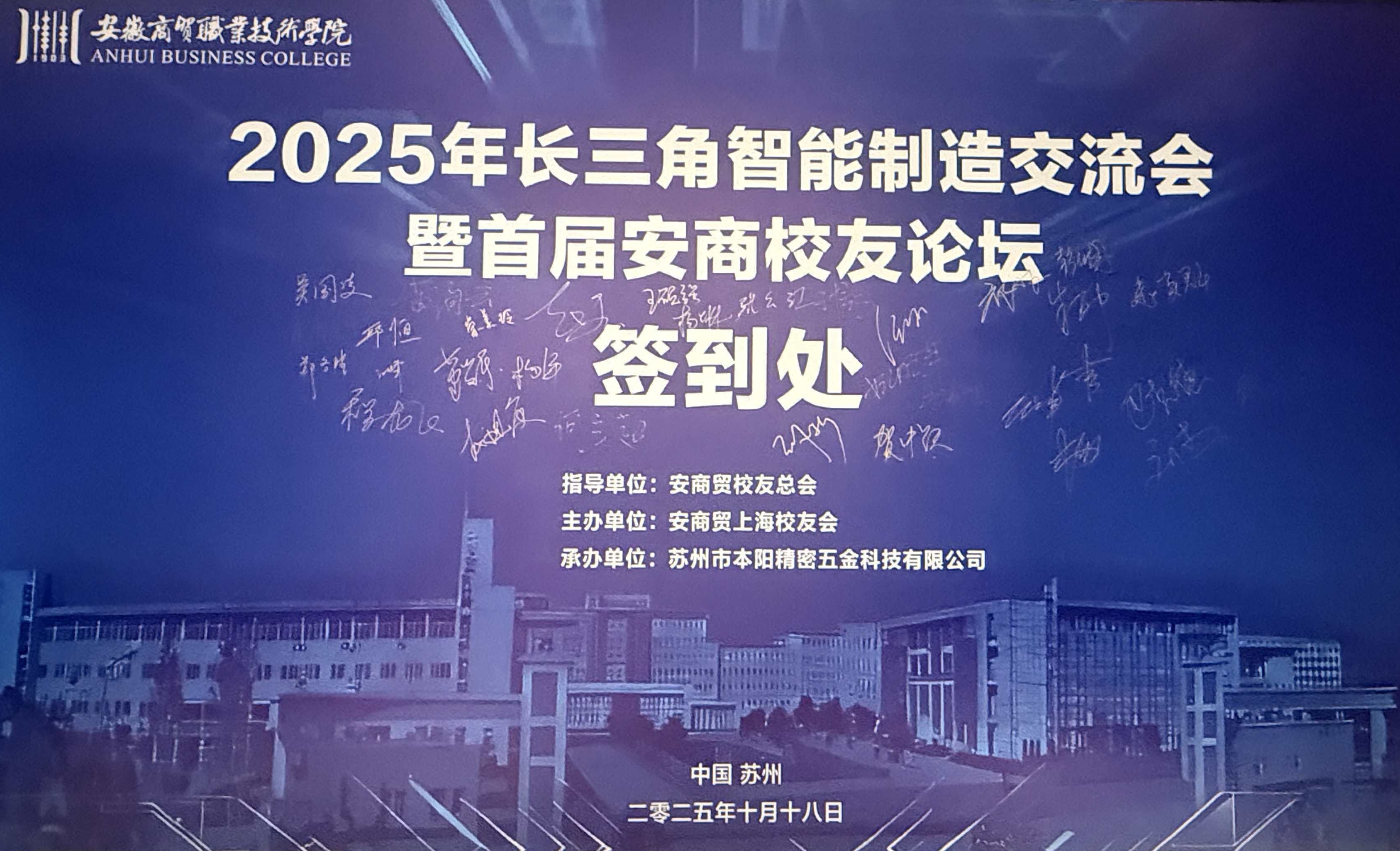 秋色宜人,群贤毕至。10月18日,由安徽商贸职业技术学院上海校友会主办、校友企业苏州市本阳精密五金科技有限公司承办的“长三角智能制造交流会暨首届安商校友论坛”在苏州吴江成功举行。来自长三角地区的校友企业家、专家学者欢聚一堂,共叙情谊、共话智造、共谋发展。学校党委委员、副院长汤飚,学校教育基金会理事长朱光应、招生就业处副处长、教育基金会秘书长计宏亮等一行代表学校出席本次盛会。