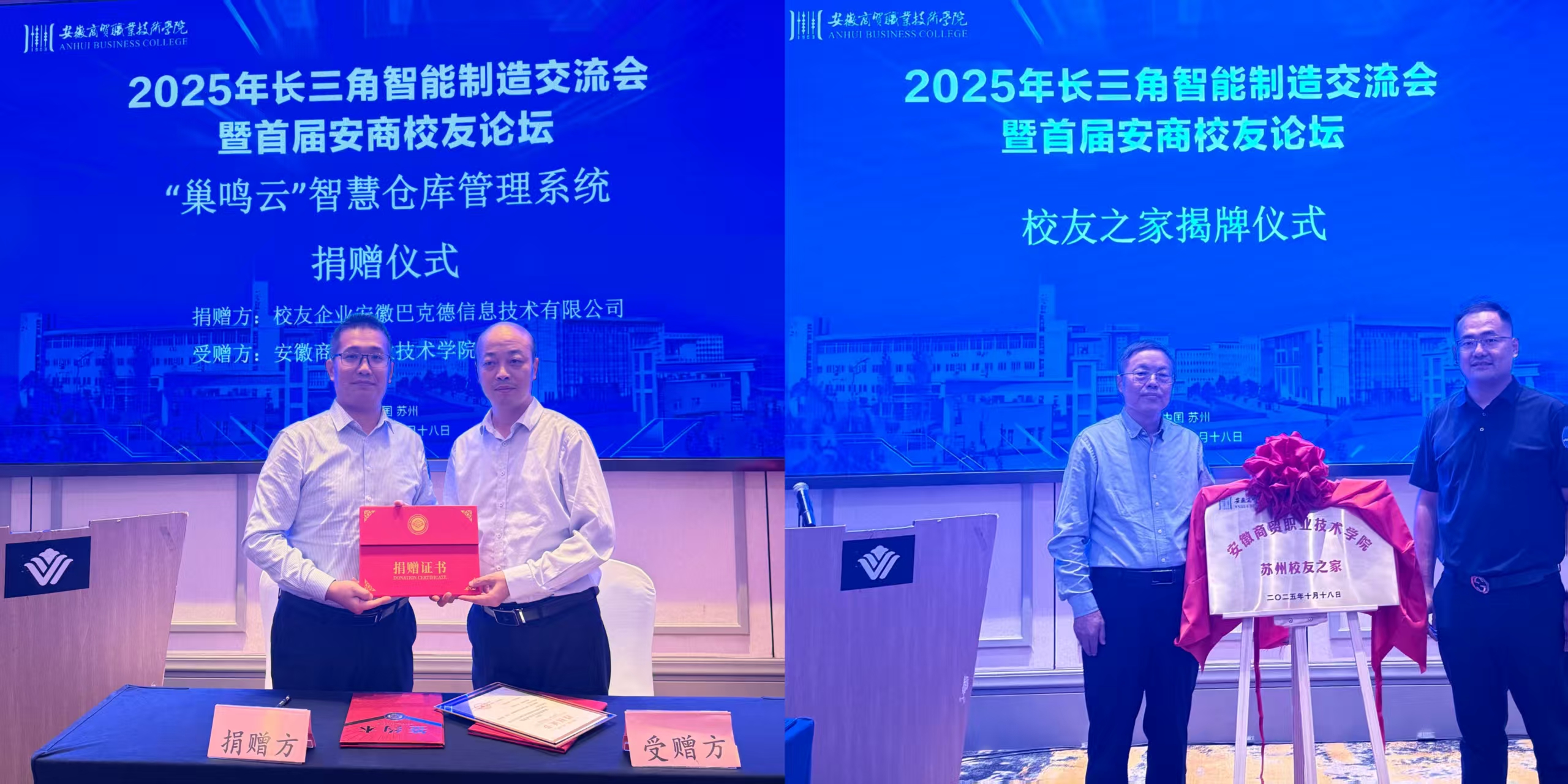 论坛期间,举行了简朴而意义重大的两项仪式。安徽巴克德信息技术有限公司(贺中跃校友企业)向母校捐赠了其企业自主研发价值200万元的“巢鸣云”智慧仓库管理系统,这一善举充分体现了校友反哺母校、支持母校建设的赤子之心。随后,在现场嘉宾的共同见证下,温馨的“苏州校友之家”正式揭牌,标志着校友联络与服务迈入了常态化、机制化的新阶段,赢得了全场热烈的掌声。