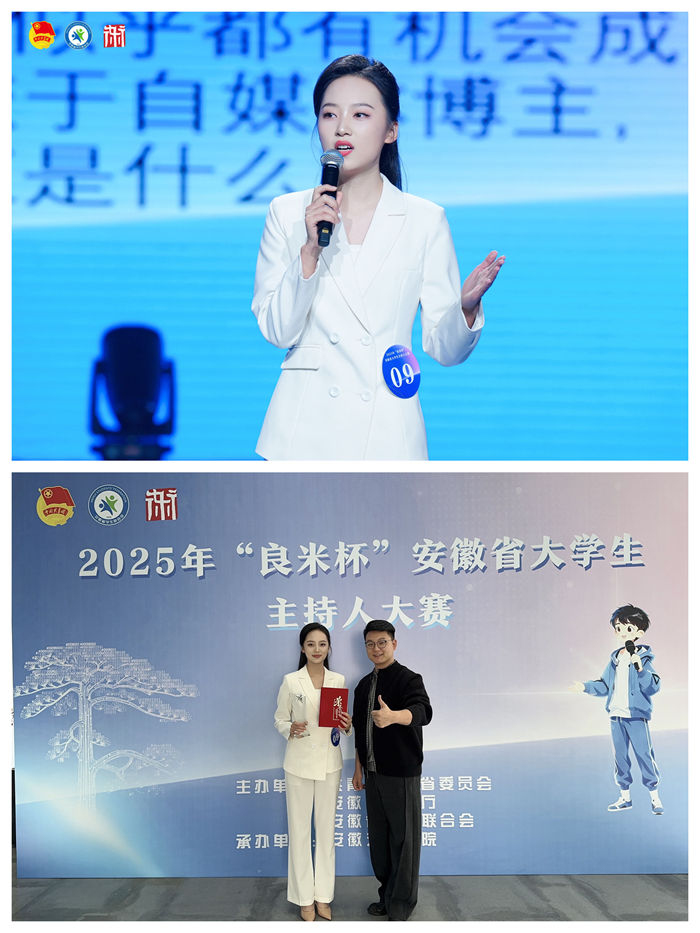 11月5日上午,由安徽省共青团委员会、安徽省教育厅主办,安徽艺术学院承办的2025年“良米杯”安徽省大学生主持人大赛决赛在安徽艺术学院精彩上演。我校由路贺龙老师指导的李娇阳同学荣获大赛二等奖,实现学校在该项赛事中的历史性突破。
