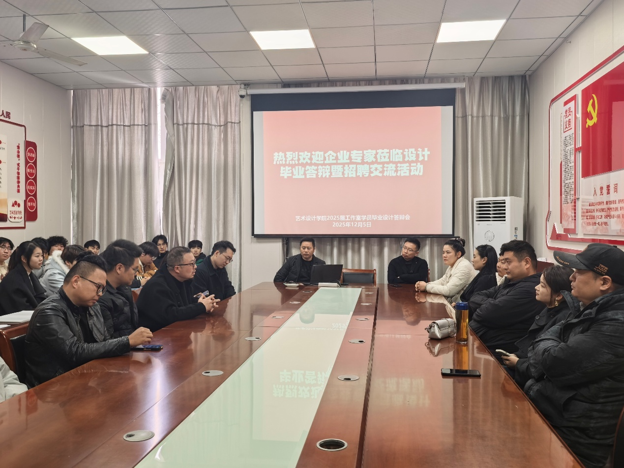本次展览的一大特色是突出应用型人才培养导向。12月7日下午,毕业答辩会在展区现场举行,由全体教研室教师与2名合作企业负责人共同组成答辩专家组,听取学生介绍作品并进行现场答辩,对各组作品进行现场评审与评分,切实做到“作品即成果,展览即考核”。答辩过程中,一位企业负责人还对几位参展学生现场发出实习邀请,充分体现了教学成果与行业需求的紧密结合。