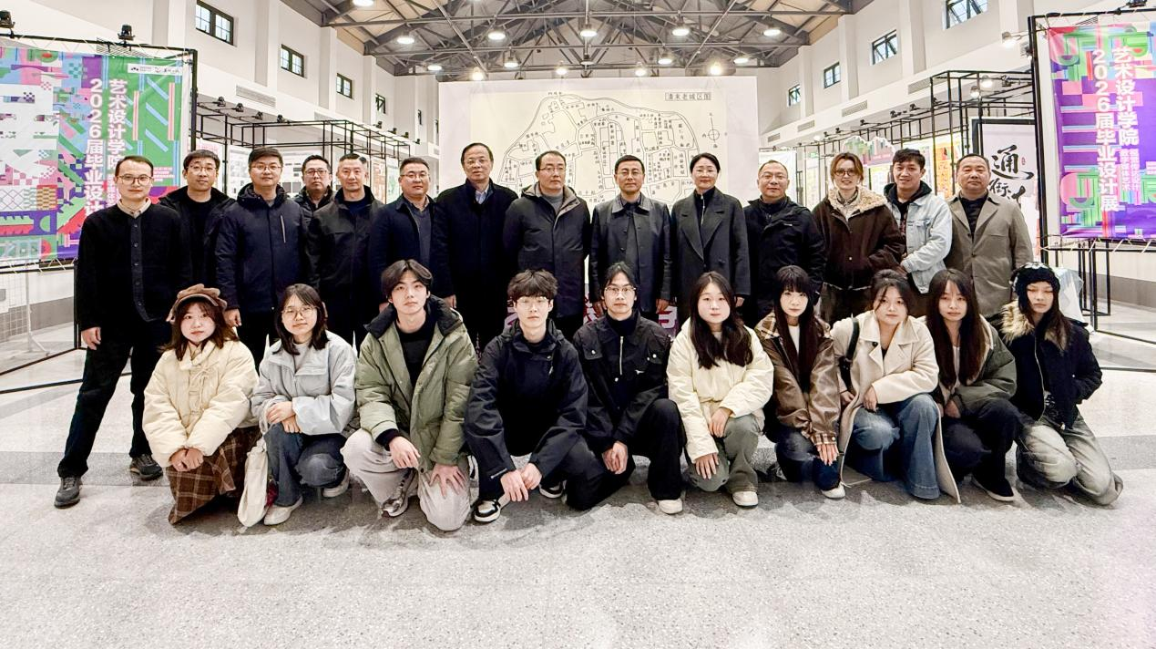 12月8日至14日,校艺术设计学院2026届毕业设计展在古城弋江剧院展厅开展。12月10日下午,校领导刘家树、王炜、汤飚、江宁、黄义兵莅临现场观展,对展览的整体策划、作品质量给予高度评价,并与参展师生亲切交流、合影留念,充分肯定了艺术设计学院在服务地方文化建设、推动产教融合等方面的育人成果。