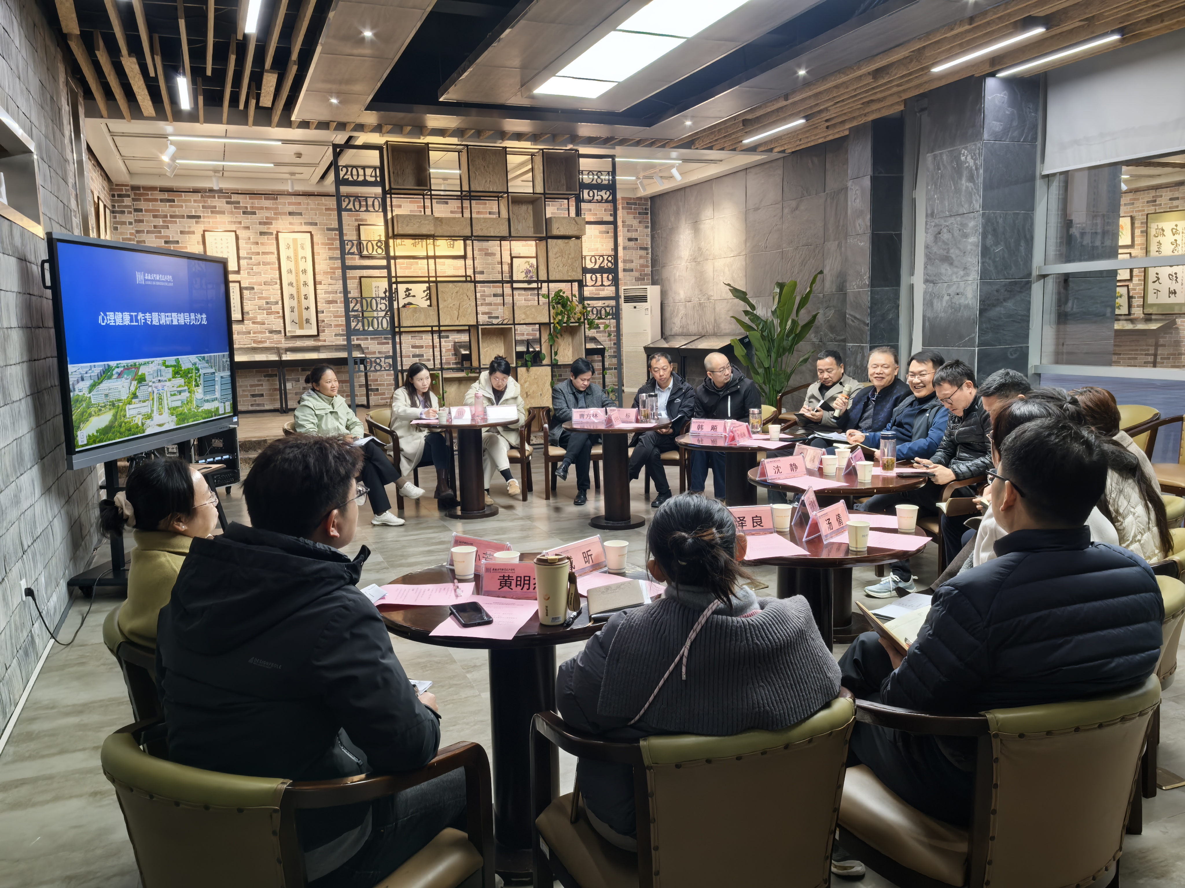 心理健康教育是落实立德树人根本任务、促进学生全面发展的重要基础,也是提升育人实效、维护校园和谐稳定的关键环节。为切实推进相关工作、凝聚育人合力,学校于12月12日下午举办心理健康工作专题调研暨辅导员沙龙。校党委副书记黄继胜、学生工作处相关负责人、各二级学院党总支负责人、心理专员及辅导员代表共同参与。沙龙由学生工作处处长、团委书记孙握瑜主持。