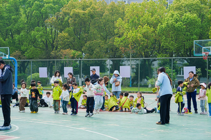 赛场活力不仅洋溢在大学校园内,也传递到了天真可爱的“萌娃”心间。开幕式上,来自师范附小幼儿园的小朋友们作为“特邀嘉宾”参与盛会。在老师和大学生志愿者的陪伴下,孩子们近距离感受赛场氛围,聆听女排队员分享奖牌背后的奋斗故事,体验集体跳绳等趣味项目。稚嫩身影与青春洋溢的赛场相互映衬,健康运动理念在互动中温情传递。学校依托支部共建平台,充分发挥体育专业资源优势,积极赋能基础教育,将健康生活理念拓展至校外,以实际行动展现高校的社会服务担当。