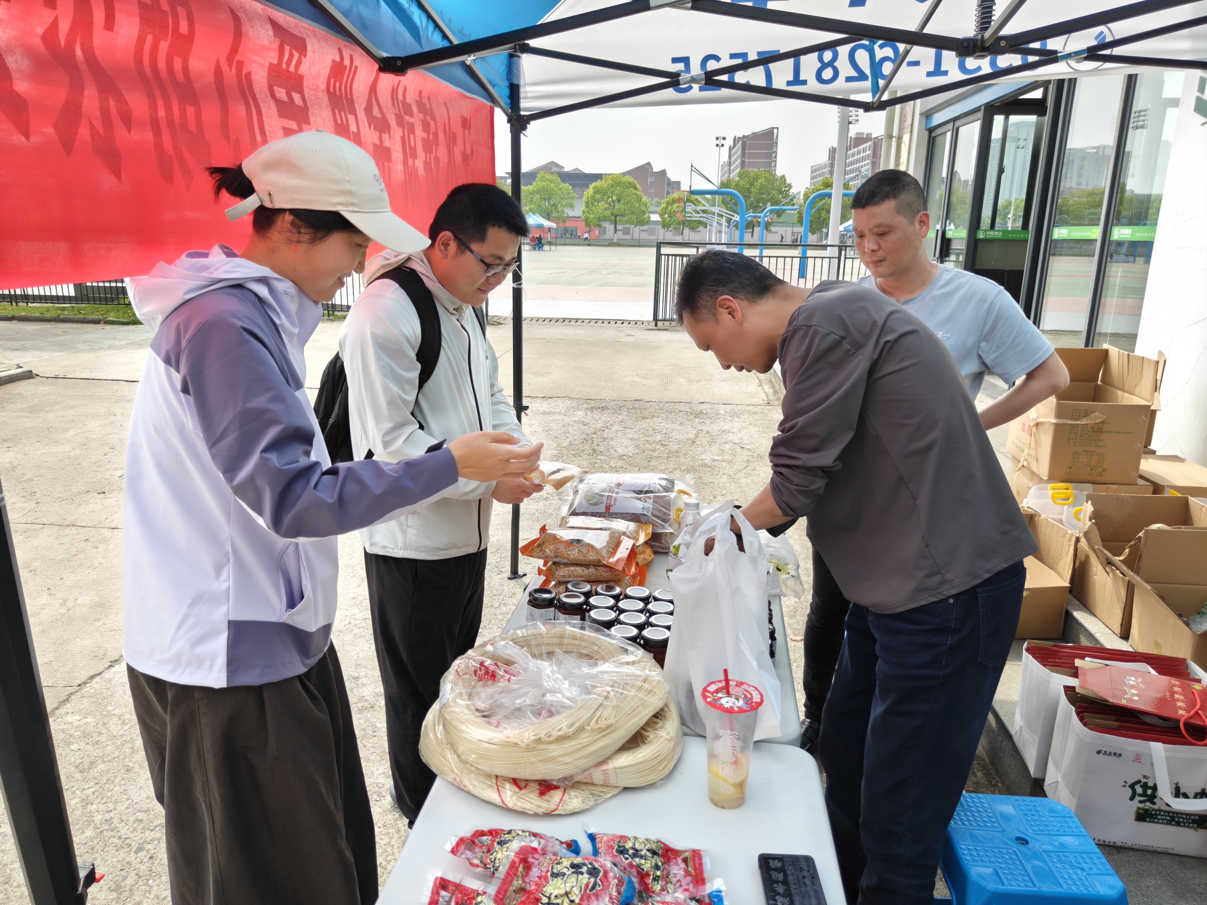 “这羊肚菌看着真不错!”“手工酱拌面更是一绝!”在运动场边,“运动会特供・助农直通车”热闹开市。作为学校定点帮扶村,无为市观音村的绿色农产品再次走进校园。“菌中之王”羊肚菌、手工牛肉酱、鲜虾酱、山珍酱,以及原生态花生米、炒米、小红稻米、手工挂面等“土特产”整齐陈列,成为师生们青睐的“能量补给包”。所有产品均为村民自产自销的绿色食材,在保障师生“舌尖上的健康”的同时,以消费帮扶的方式助力乡村振兴。本次活动现场销售额达一万五千元,达成了师生健康饮食、村民增收致富的双向积极成效。