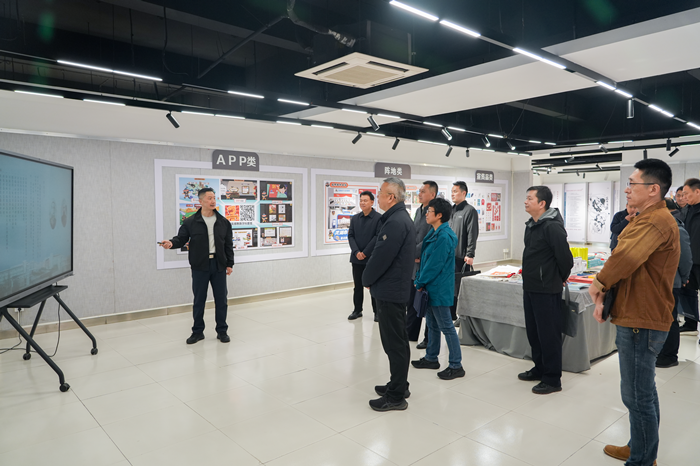 党委副书记黄继胜代表学校对公安部指导组一行表示欢迎,并陪同实地考察了文创中心展厅及工作室。指导组认真听取了艺术设计学院院长吴昊关于文创中心近期工作成果及年度重点任务的汇报,现场完成全国反邪教数字展馆(一期)建设项目验收,对一期建设成效予以充分肯定,同时针对部分展陈内容提出具体修改意见。