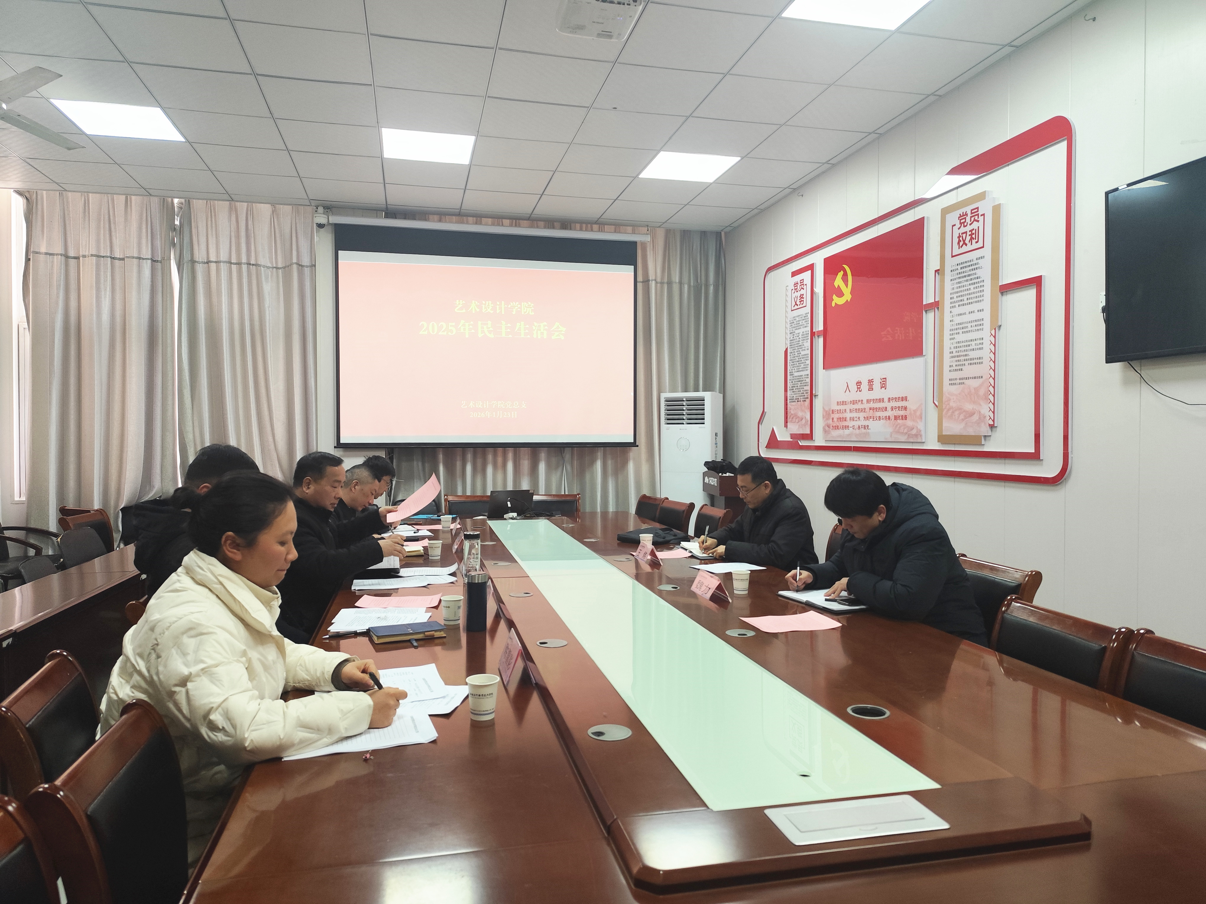 根据学校党委统一部署,近日,艺术设计学院党总支在学院会议室召开2025年度民主生活会。党委副书记、院长王炜出席会议并作点评讲话,组织人事处常务副处长魏力到会指导,学院全体领导班子成员和党总支委员参加会议,会议由学院党总支书记韩飚主持。